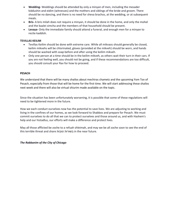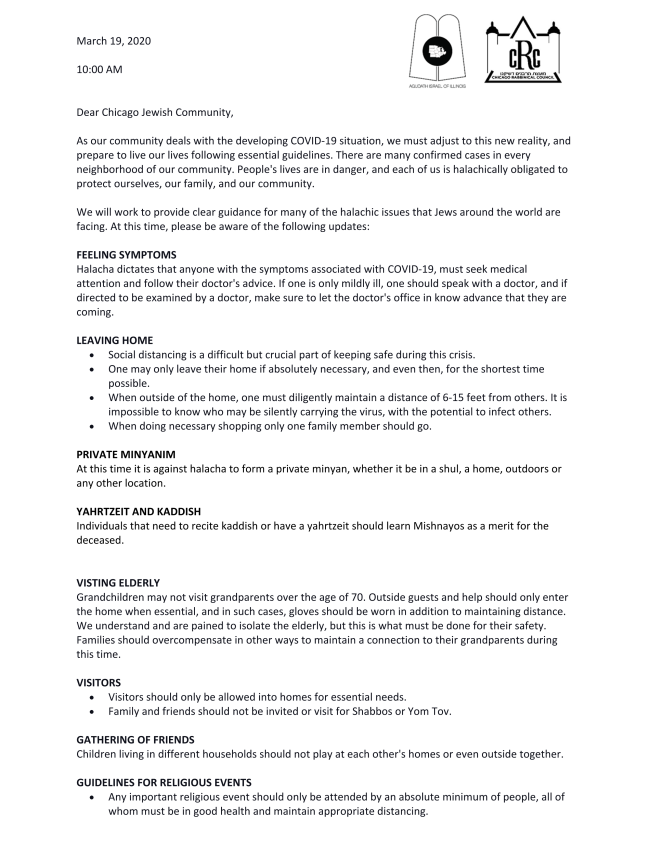 Subject: COVID-19 Update from Chicago Rabbanim_3.19