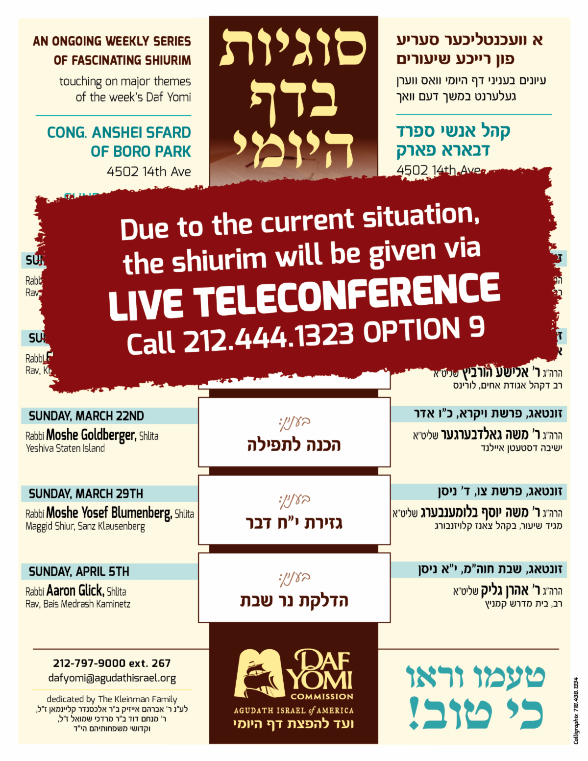 Fwd: Sunday Mornings 11:00 AM - Daf Yomi Sugyos by Teleconference