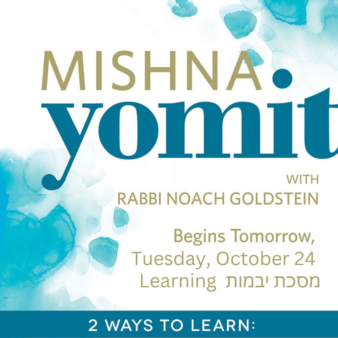 Subject: Starting Tomorrow: MISHNA YOMIT - Starting Seder Nashim with Learning Masechet Yevamot