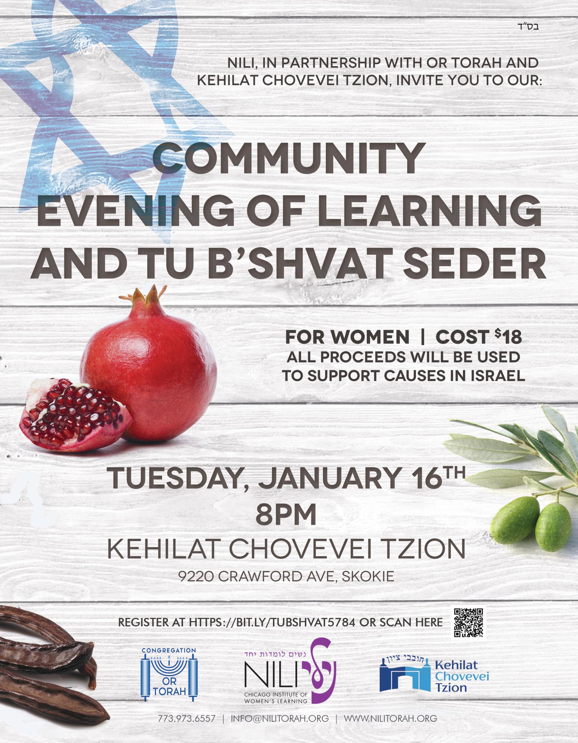 ----- Forwarded Message -----From: "NILI: Chicago Institute of Women's Learning" <info@nilitorah.org>To: "Chana Chroman" <mates57564@aol.com>Sent: Tue, Jan 9, 2024 at 1:03 PMSubject: Mark Your Calendars: Community Evening of Learning and Tu B'Shvat Seder ONE WEEK AWAY!
