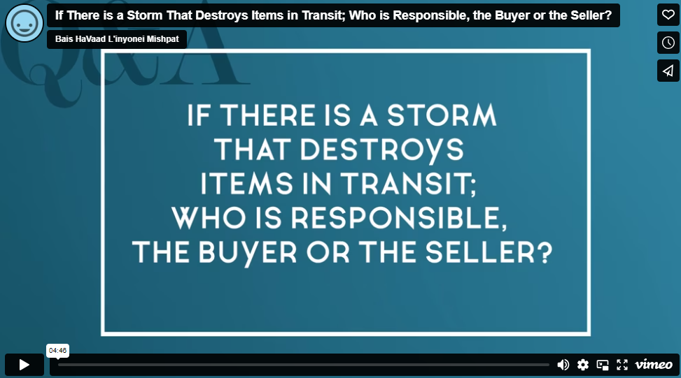 For argument's sake, let's say this was a cash deal, meaning that Shimon already gave Reuven a cash payment for the shipment. As we have explained previously, a cash payment does not create a transfer of ownership (for we don't want the seller to stop caring for the merchandise after he receives payment); however, neither side is allowed to back out after the payment is made. If any side were to back out at this point, they would be liable to the severe curse known as Mi Shepara.
