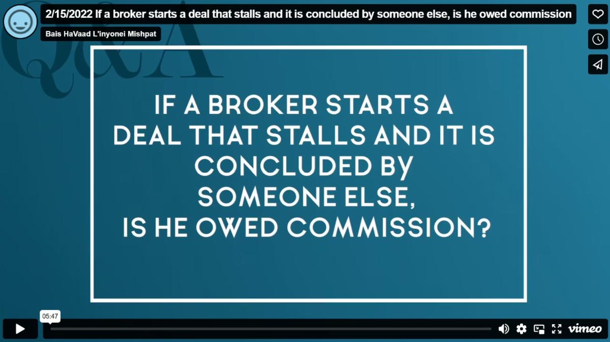 Rav Moshe Feinstein rules that a broker is entitled to a commission as long as it can be said that his work played a role in making the final deal happen. If his efforts created interest in the deal, and the second broker capitalized on those efforts to finalize the transaction, the first broker deserves a portion of the commission. The same would apply to a shadchan.