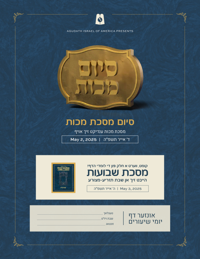 With just one blatt remaining until the forthcoming siyum on Maseches Makkos, excitement is running high in the Daf Yomi world. Tens of thousands of lomdei hadaf will be celebrating the siyum, marking a formidable achievement of daily dedication to limud haTorah b'kvius.