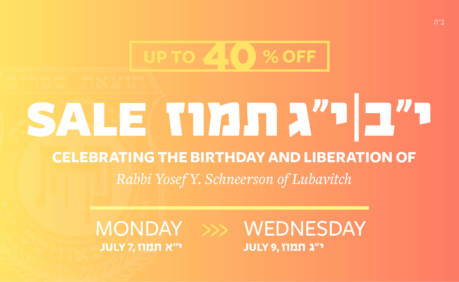 Subject: Annual Yud Beis & Yud Gimmel Tammuz Sale · Up to 40% Off!