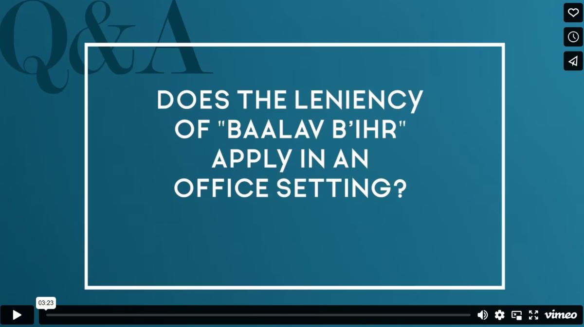 The Aruch Hashulchan writes that business relationships also fall under the category of libo gas bah. It is clear that this does not apply to every business relationship – only to those where there is a sense of familiarity between two people who work together. For example, in some offices people who work together refer to each other as Mr. Blank and Mrs. Blank. In others, they refer to each other by first name. The former would often indicate them not being libo gas bah, while the later probably would be. |
