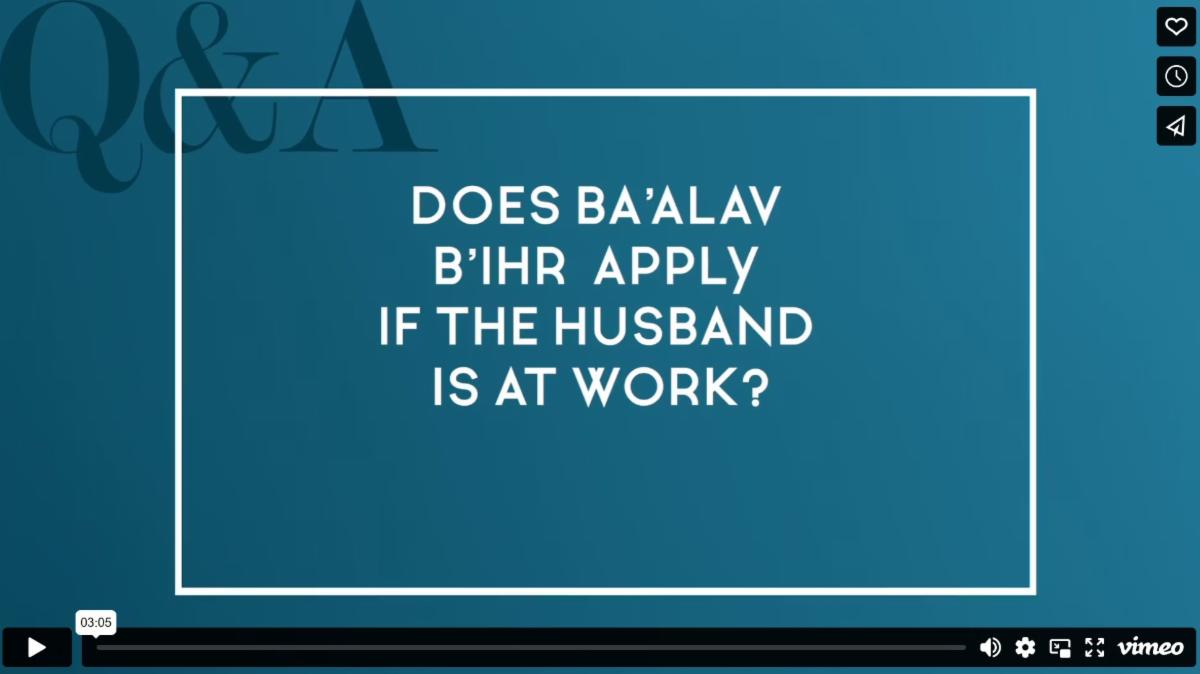 Answer: The Chochmas Odom limits the leniency of Ba'alah b'ihr and says it only applies if the man is reasonably expected to come home at any time, and not if he is away at work for the day. The Chazon Ish, however, is quoted as being more lenient, saying that because Ba'alah b'ihr is a psychological heter, it applies as long as the husband is physically in town. He says that even if he is not expected home, the wife will still be precluded from doing an aveirah [provided there isn't a libo gas bah relationship].
