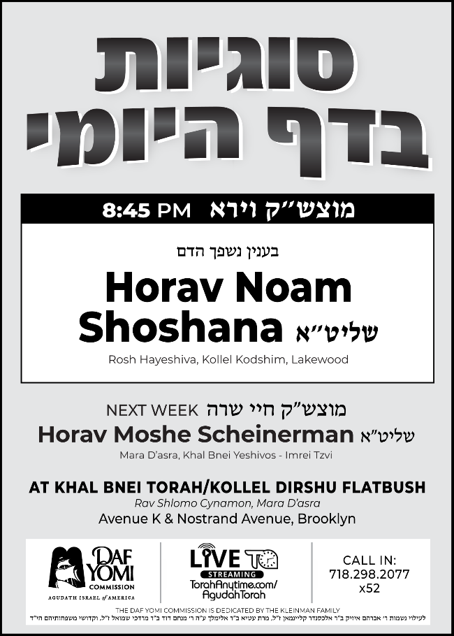 Subject: Parshas Vayera! Daf Yomi Sugyos - HaRav Noam Shoshana
