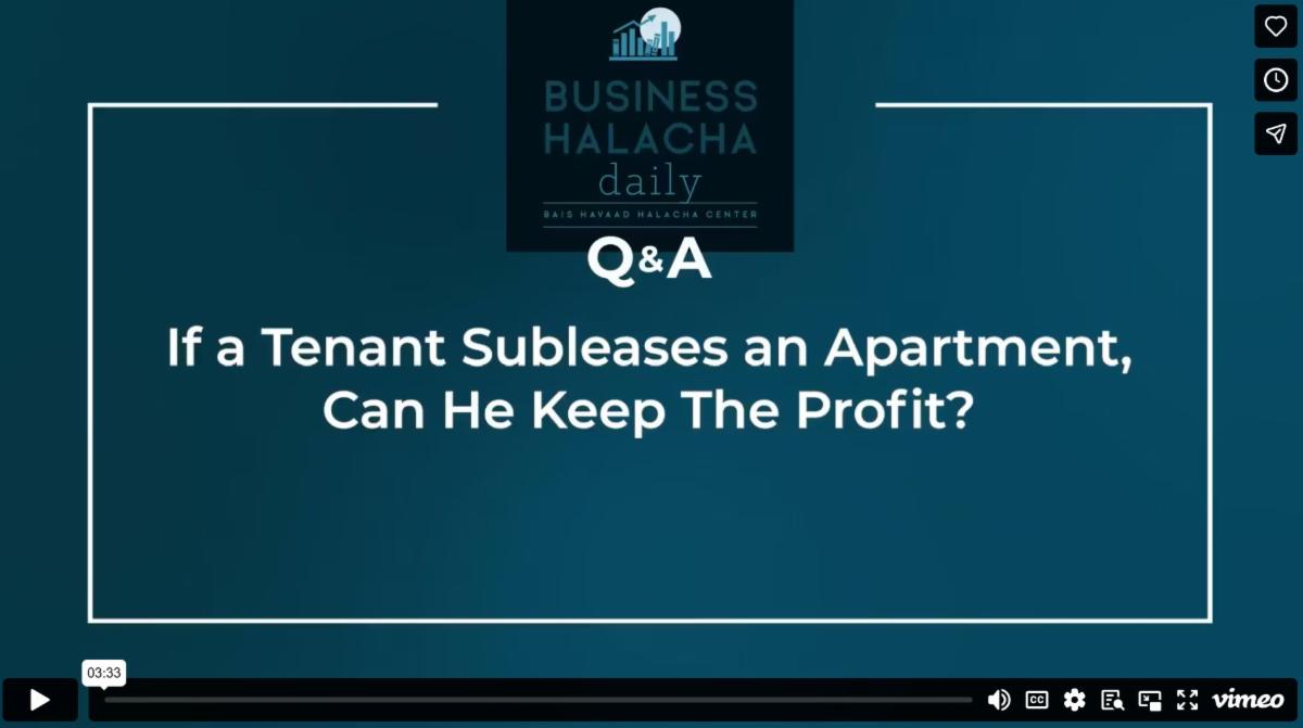 Answer: We previously said that it is sometimes permitted to sublease and sometimes forbidden. In a case where subleasing is permitted by halacha, the tenant is allowed to make a profit. Since he bought the rights to the property for a certain amount of time, he can make a profit from it during the time that he owns the rights.
