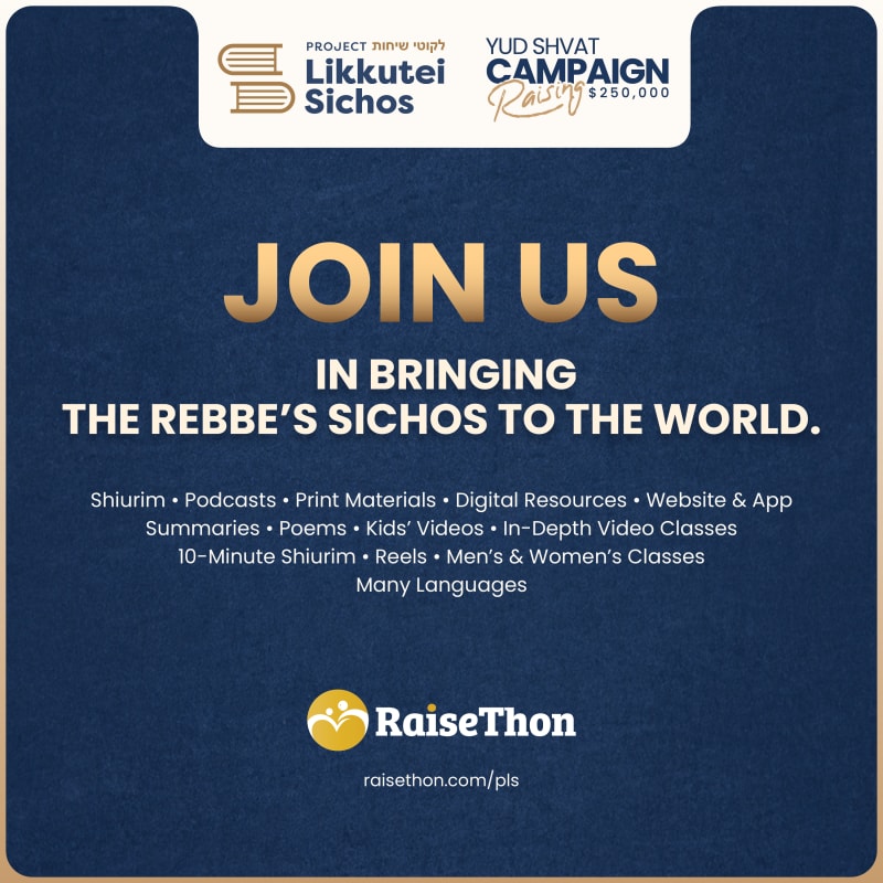 By committing to weekly learning and by supporting our annual fundraiser, you help ensure that Likkutei Sichos continue to reach and inspire tens of thousands of people around the world.