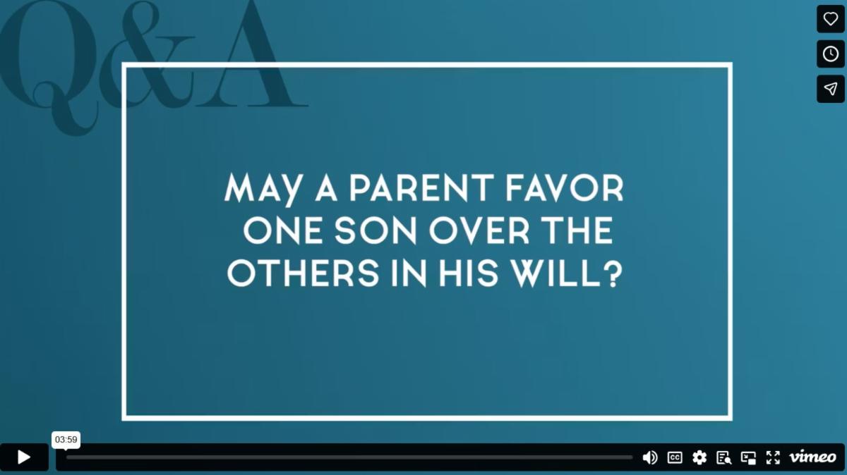 Answer: The Gemara says that one should not do that. The Gemara says that one should not make distinctions between one son and another. We learn that from the story of Yosef. It says that Yaakov favored Yosef by giving him "some extra wool" i.e. the kesones pasim, which it says was not even worth a large amount. This led to disharmony and jealousy, and eventually led to Yaakov and his sons going down to Mitzrayim as a result. We thus see that a father should not favor one son. There are Poskim who say that this applies only during a father's lifetime, as in the story of Yaakov and Yosef. [It is interesting that when it comes to the prohibition of havaras nachalah, it is forbidden to disinherit a son after death, and there is a machlokes whether or not this applies also to gifts given during the father's lifetime, but here we see the opposite – that some Poskim say the concern of jealousy amongst brothers only applies during the father's lifetime and not at the time of death.] Other Poskim disagree and say that even in a will, a father should not distinguish between his sons.