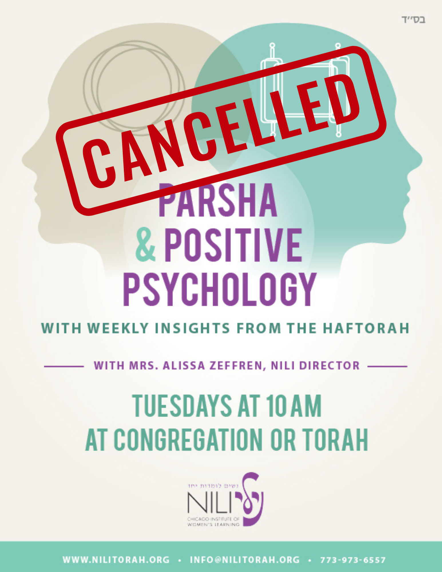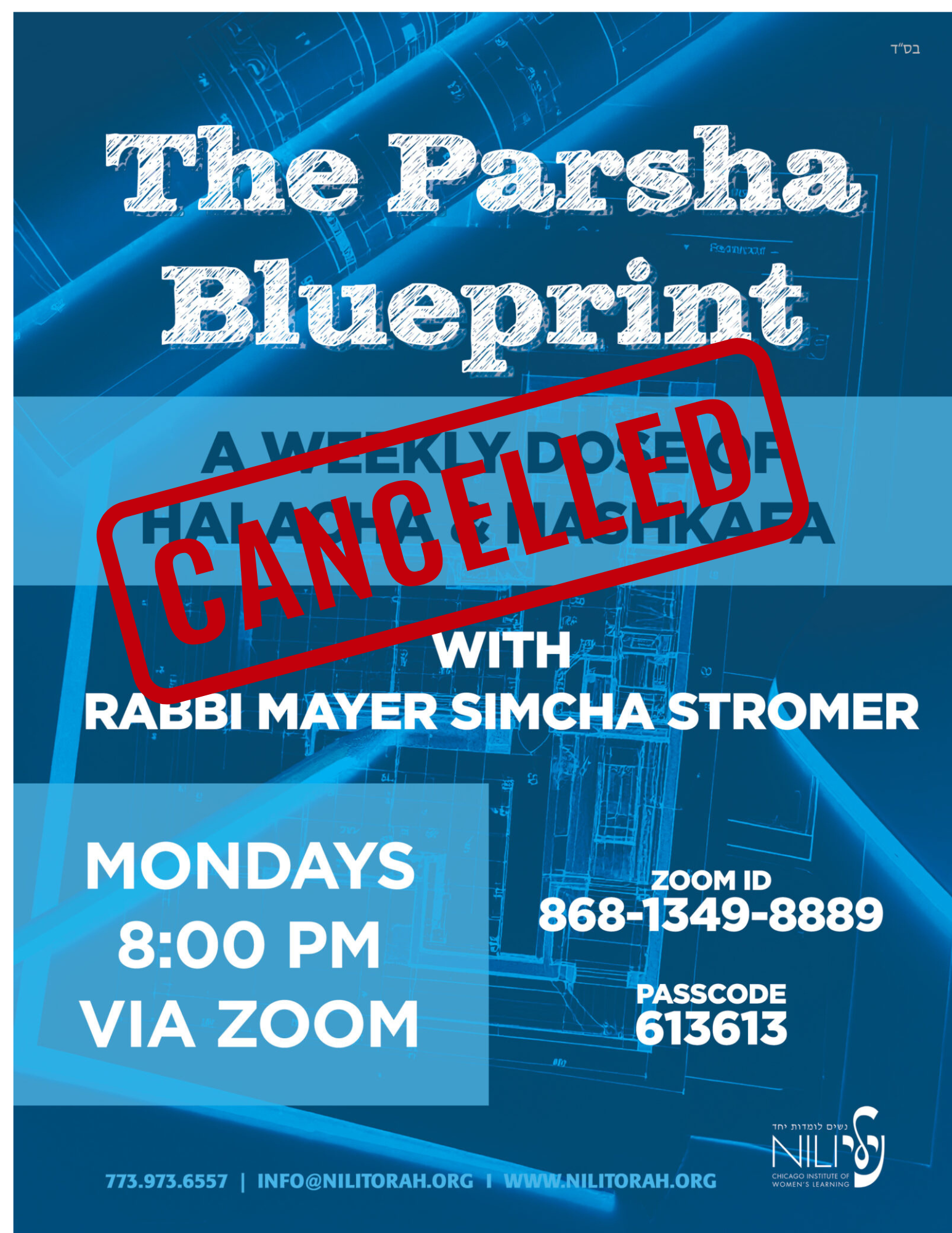 Subject: Parsha Blueprint and Parsha & Positive Psychology CANCELLED This Week!
