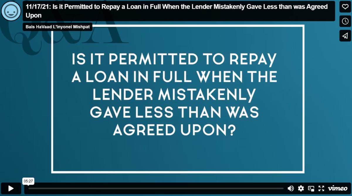 Is it Permitted to Repay a Loan in Full When the Lender Mistakenly Gave Less than what was Agreed Upon?