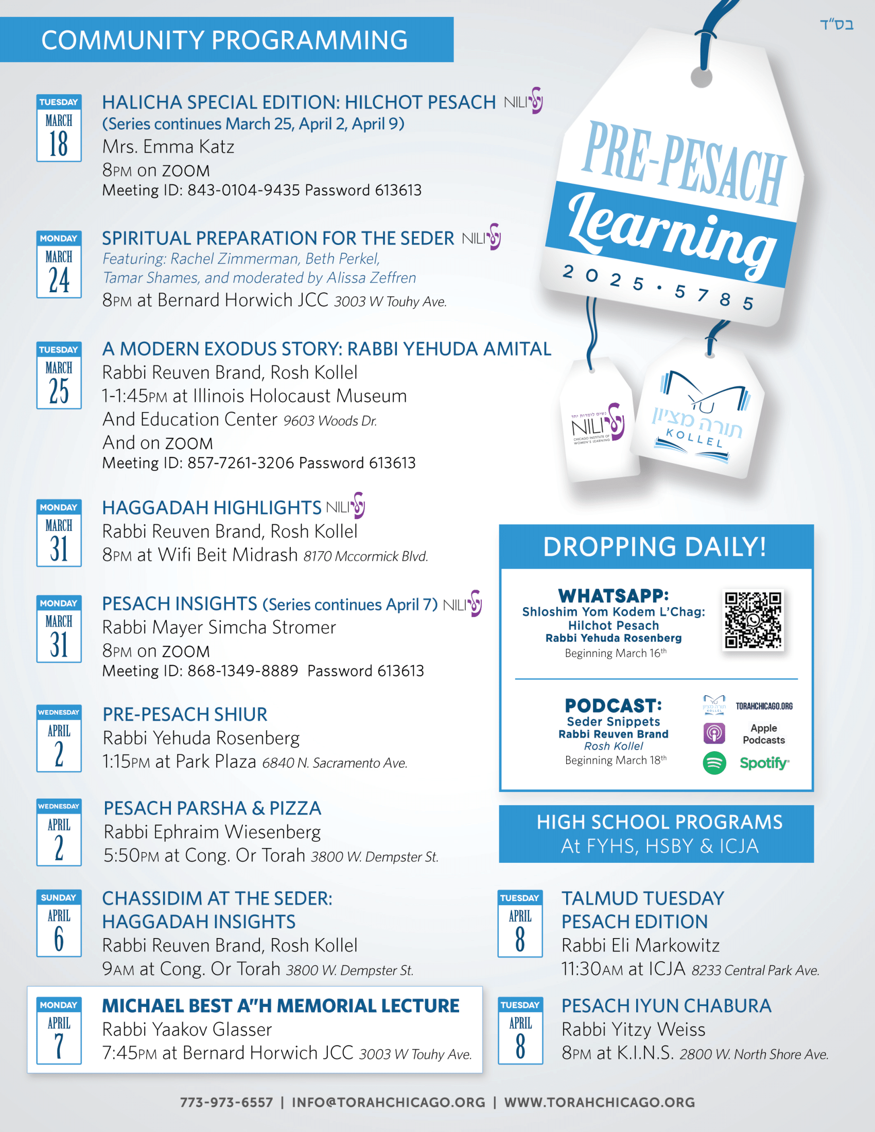We look forward to learning together as we prepare for a meaningful and enriching Pesach!