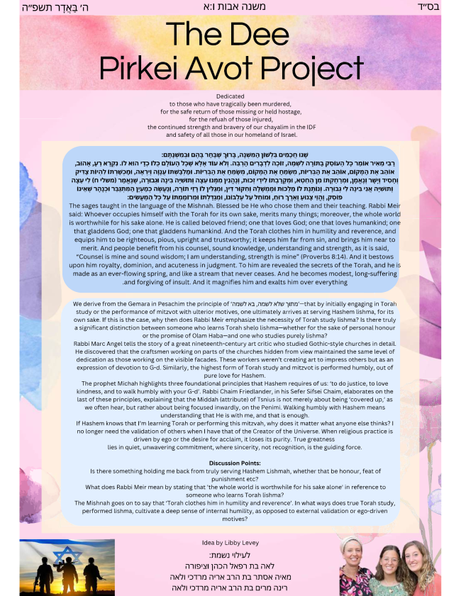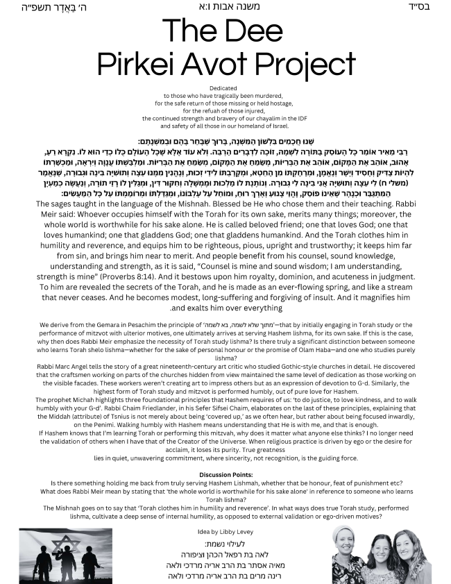 This week's idea on Mishna 6:1 is written by Libby Levey, co-founder of The Dee Pirkei Avot Project. Libby and Maia were childhood friends when Maia lived in London and stayed close since. Libby went on to co-found the project having been inspired by learning Pirkei Avot with the Dee family on a Friday night in their home. 🇮🇱 עם ישראל חי 🇮🇱