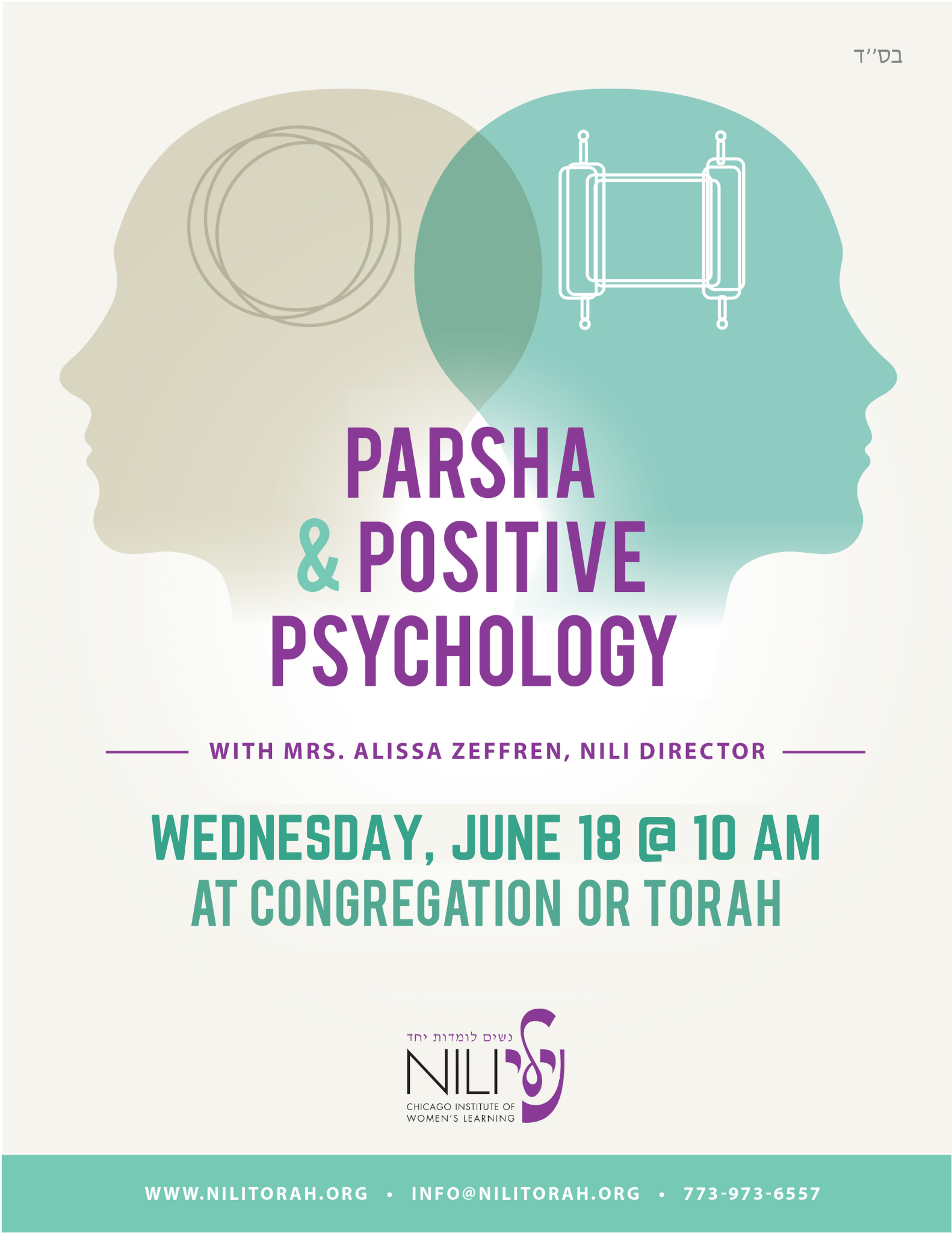 PLEASE NOTE: PARSHA & POSITIVE PSYCHOLOGY WILL TAKE PLACE THIS WEEK ON WEDNESDAY, JUNE 18, 2025!