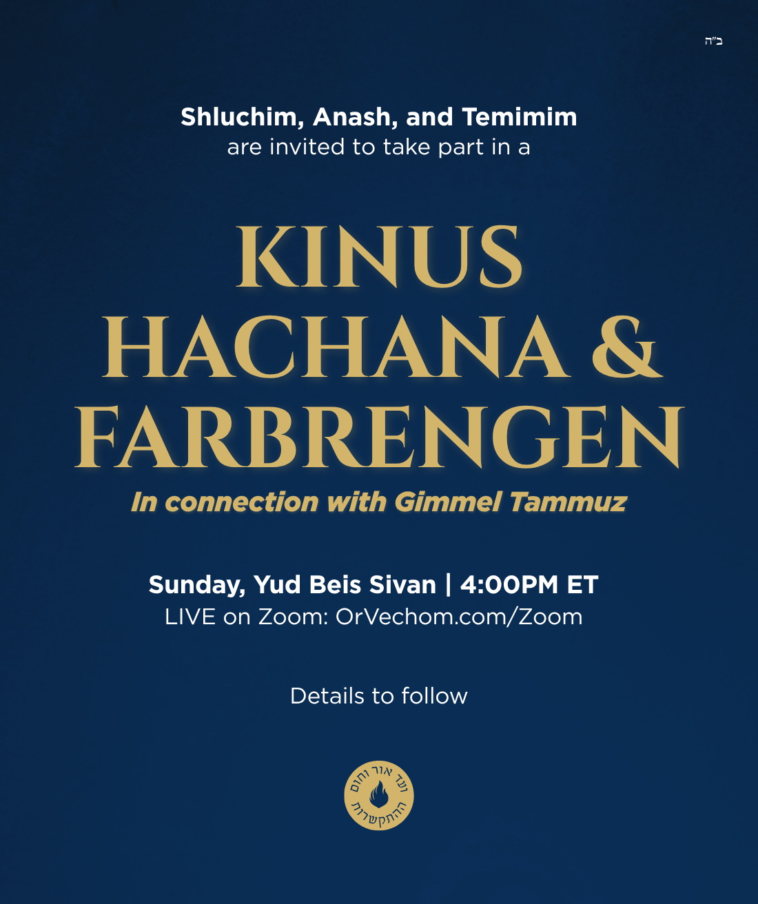 Subject: Yud Beis Sivan: Kinus Hachana & Farbrengen