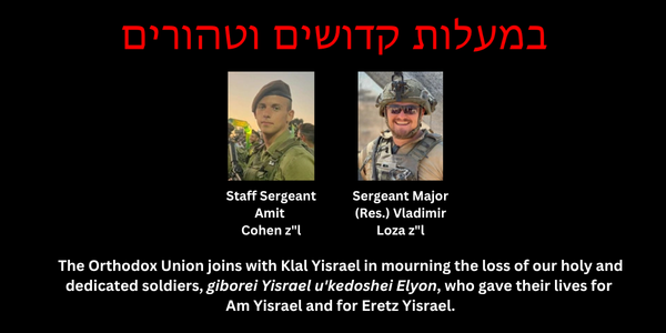 PARSHAT MATOT-MASEI July 25-26, 2025 / 1 Av 5785 THIS SHABBAT Rosh Chodesh Av | | | FEATURED | | |  | | Educating Through Experience | Imagine beginning your career journey all the way in junior high! That's exactly how Yachad's director of talent development, Rebecca Schrag-Mayer, got her start. In this episode of the Oh, You? podcast, Rebecca sits down with our EVP and COO, Rabbi Dr. Josh Joseph, and dives into her lifelong love of Yachad (matched only by her love of animals, becoming a vegetarian at just 8 years old)! Together, they also reflect on the mentors who shaped them, the challenges of balancing career and family, and the transformative power of experiential education. | | | |  | | The Role of Kosher Certification Agencies in Navigating Food Supply Chain Volatility | | OU Kosher | Tariffs, proposed regulatory changes that could ban some synthetic additives, and other factors are creating uncertainty in today's food chain supply. OU Kosher COO Rabbi Moshe Elefant discusses how kosher certification agencies are helping manufacturers navigate these supply chain disruptions and meet the diverse dietary needs of their consumers. | | | | AROUND THE OU | |  | | A Tisha B'Av of Meaning | Reflect with kinnot led by engaging speakers, explore powerful on-demand programs like the OU Women's Initiative's Holding on to Faith: Layers of Loss and NCSY's Kumzitz of the World, and recite a kinnah for a fallen soldier. | | Sign Up for Email Reminders | | |  | | NCSY | | Hashgacha in a Tefillin Bag | Mozee Gluck kept a chayal's photo in his tefillin bag for over a year – only to discover while on NCSY Derech that it was his own madrich, Abie Goldberger. Unknowingly, Mozee had been praying for the safety of his own counselor! | | View on Instagram | | |  | | OU Women's Initiative | | Rosh Chodesh Av Lunch 'N Learn | Watch the OU Women's Initiative's Rosh Chodesh Av Lunch 'N Learn, featuring Devorah Chasky on "Chizkiyahu's Prayers: Profound Lessons in Belief During Difficult Times." | | Watch Now | | |  | | Jewish Action | | Remember. Reflect. Rebuild. | Subscribe now to Jewish Action's monthly email newsletter to receive its most moving issue of the year – arriving before Tisha B'Av. This special edition features powerful stories from the Holocaust, personal accounts of faith in the face of loss, and timeless reflections on Jewish resilience. | | Subscribe Now | | | UPCOMING EVENTS | | TORAH | |  | | Rabbi Moshe Hauer | | Give Me Yavneh and Its Sages | In the second century, the Romans martyred Rabbi Chanina ben Tradyon by wrapping a Torah scroll around his body and burning them together. | | Read More | | |  | | Rebbetzin Dr. Adina Shmidman | | Coming to Our Senses | This Shabbat, we read the haunting words of the prophet Yirmiyahu in the haftorah known as Shimu Dvar Hashem. | | Read More | | |  | | Dr. Erica Brown | | Looking Forward, Looking Back | God will not hear the prayer of those who separate religious obligation from human compassion. The religious worldview must encompass both. | | Read More | | |  | | Rabbi Lord Jonathan Sacks zt"l | | | | |