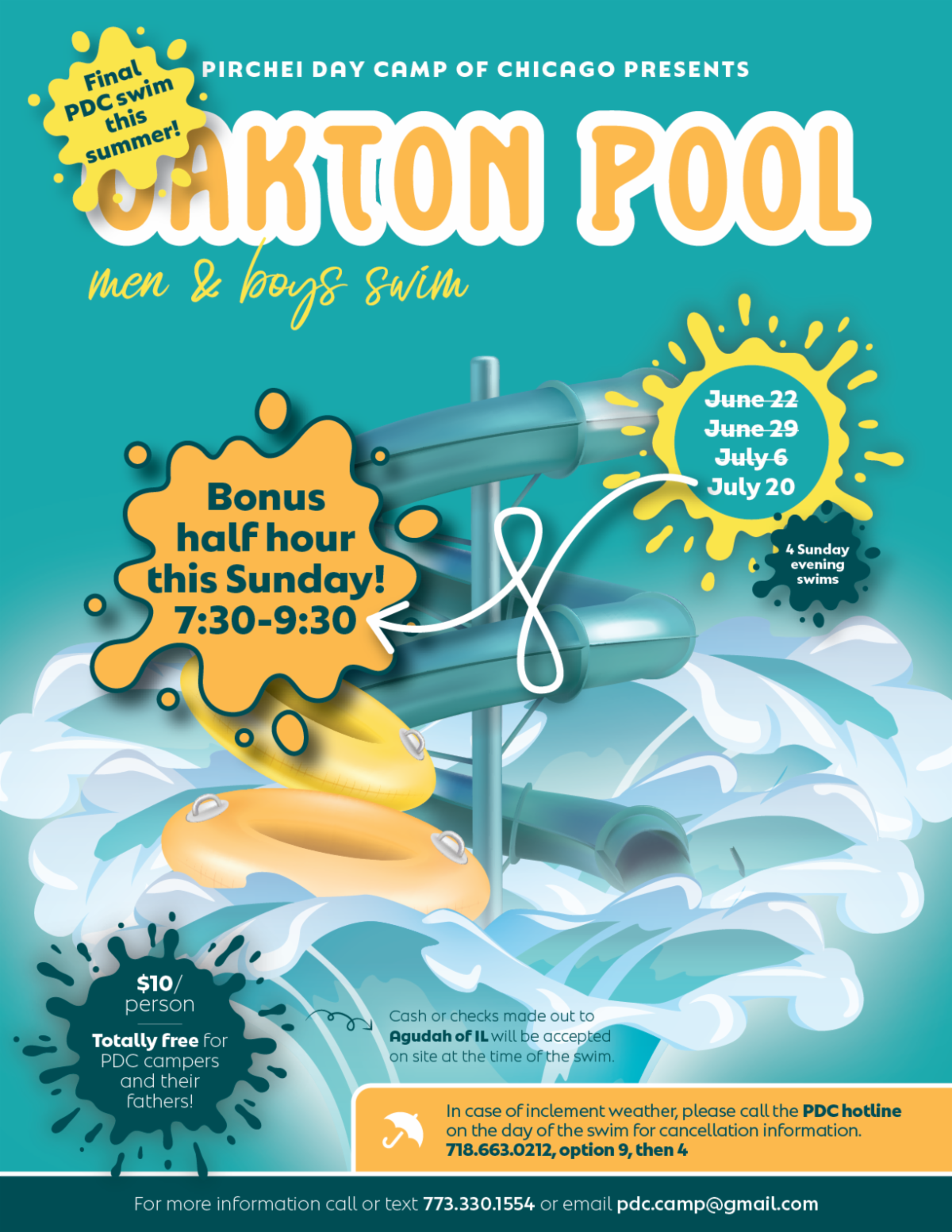 • Bonus half hour for the final PDC swim of the season at Oakton Pool!